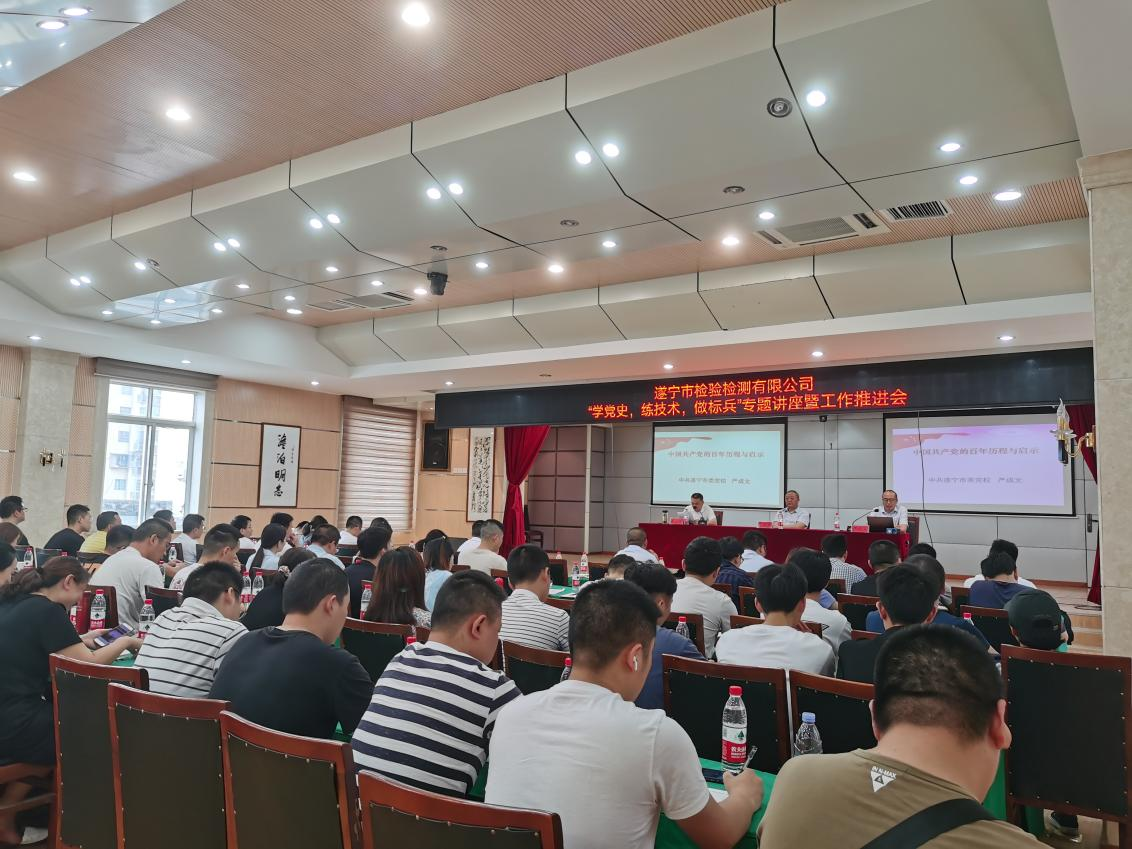 ? ? 為慶祝中國共產(chǎn)黨建黨100周年,回顧黨的光輝歷程,歌頌黨的偉大成就,繼承和發(fā)揚黨的優(yōu)良革命傳統(tǒng),激勵全體職工以更加飽滿的精神狀態(tài)投入到檢驗檢測工作中。7月2日下午,公司舉辦了“學(xué)黨史,練技術(shù),做標(biāo)兵”專題講座。會議由戴云峰總經(jīng)理主持。